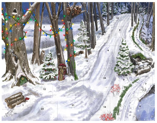 Take a moment each day to stop and enjoy the wildlife and hidden scenes in this traditional-style advent calendar. Each window reveals a forest friend at the Holiday Party. I hope this calendar can be a daily reminder to enjoy the season, be generous and show kindness to others, including our furry (or not so furry!) friends.